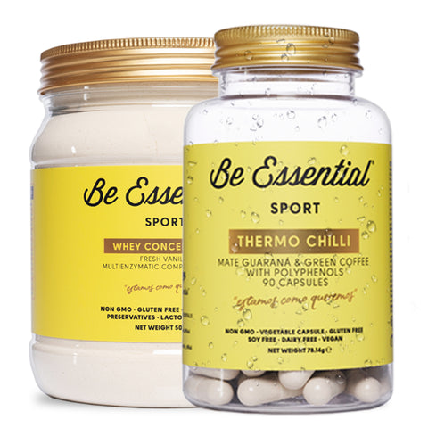 Descubre la familia "Potencia Muscular y Quema Grasa" de Be Essential, donde se fusiona la potencia de Whey Concentrate con la acción termogénica de Thermo Chilli para ayudarte a lograr tus objetivos de reducción de grasa de manera efectiva.